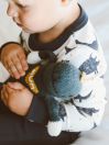 Jucăria zornăitoare Dino este realizată manual, folosind bumbac organic certificat G.O.T.S. În interior se află o zornăitoare fără ftalați. Bună de îmbrățișat la somn sau un companion minunat pentru a explora lumea, jucăria Maxwell este perfectă pentru cel mic.