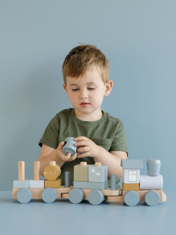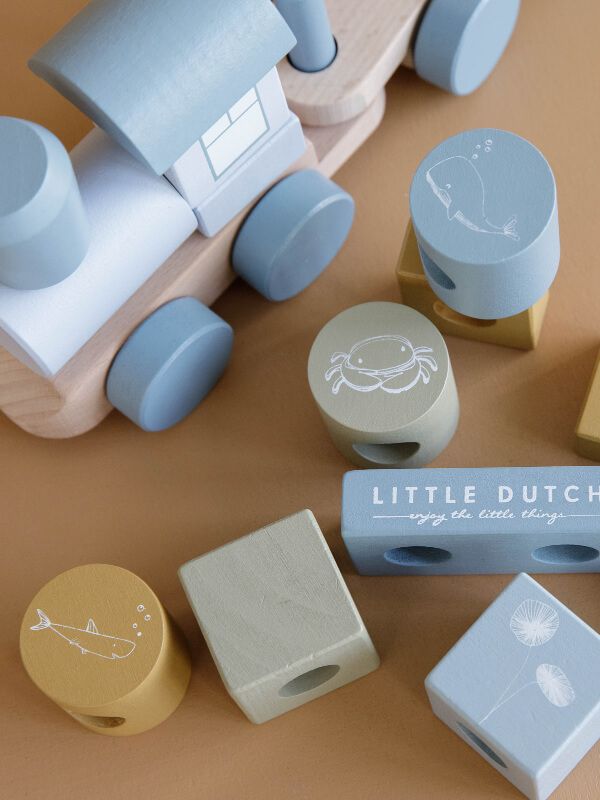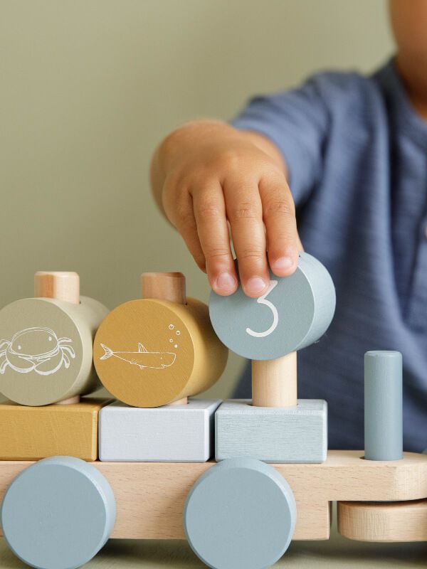 Trenuleţ lemn cu forme pentru stivuire Ocean Blue